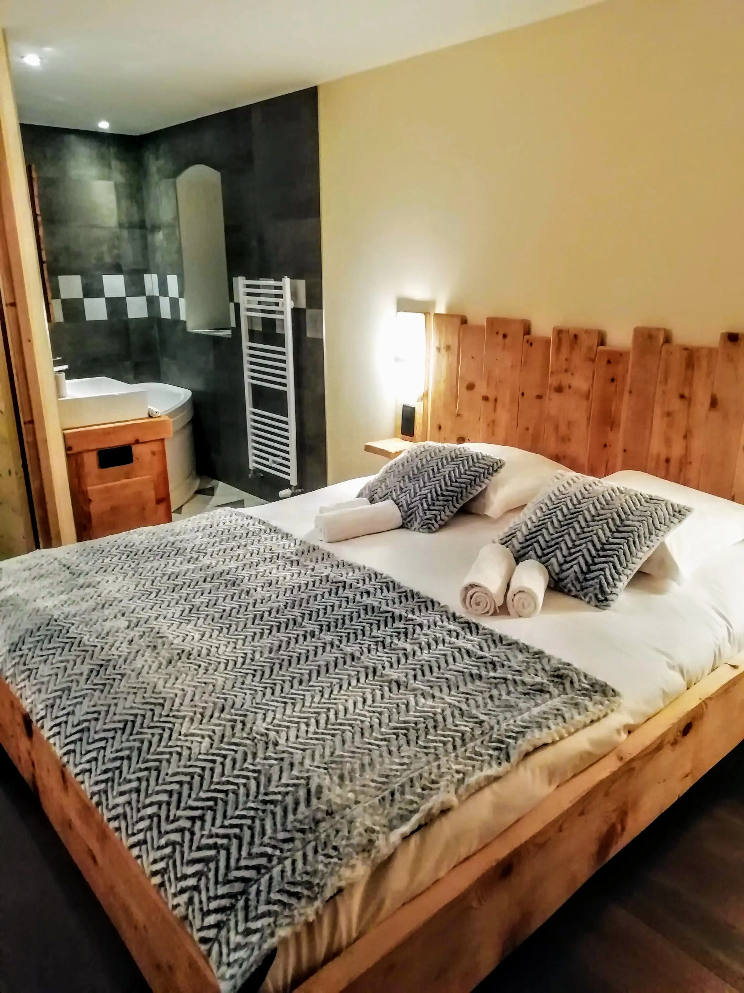 Grâce à cette disposition astucieuse, chacun peut profiter de moments de partage, tout en préservant son espace personnel. Que ce soit pour des vacances en famille, une escapade entre amis ou un séjour prolongé, la chambre Tribu allie praticité, intimité et chaleur, pour que chacun se sente véritablement chez soi.